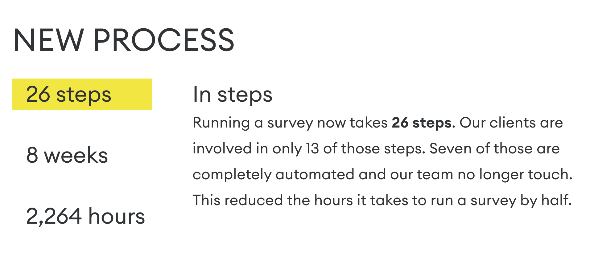 This project positioned us to leverage AI for reporting and streamline survey setup via API integrations.