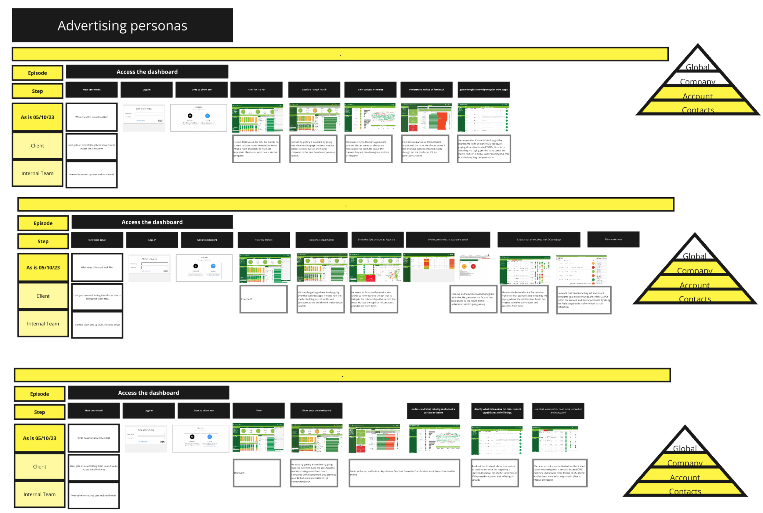 Our existing dashboard was cumbersome, built through a lengthy development process that involved creating customized solutions and stitching them together with tabs. This resulted in a disjointed user experience, with multiple sections showing similar results but causing confusion.